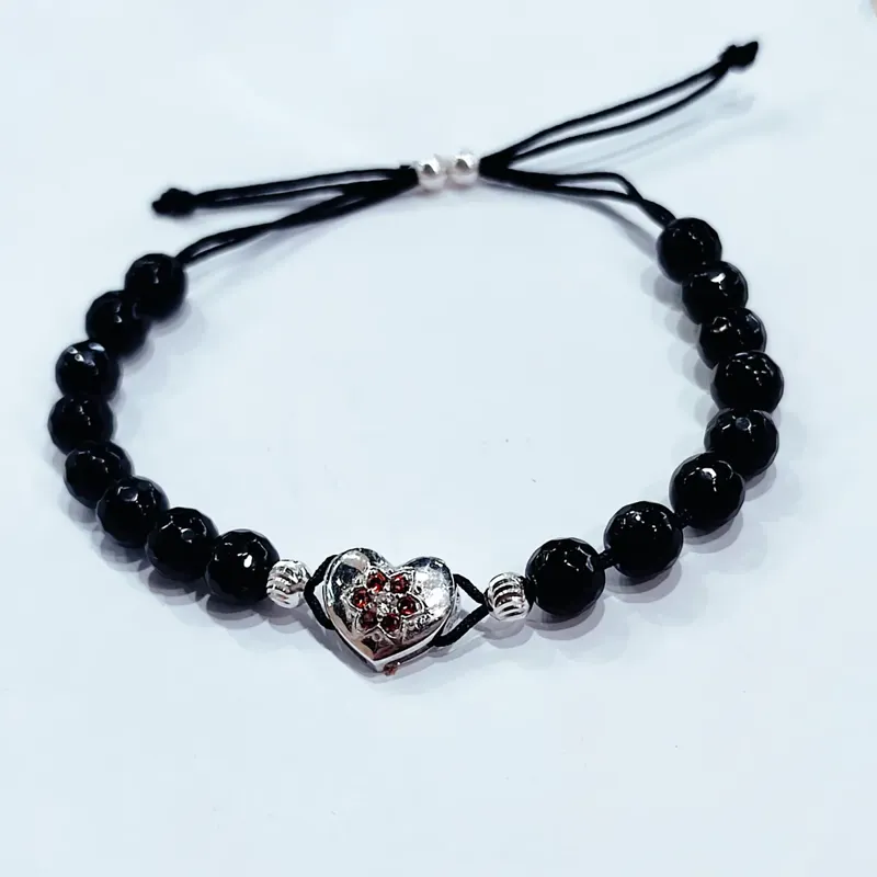 Браслет на затяжках, із нової колекції Барви. Поєднання намистин із оніксу та срібних елементів. Намистини 5 мм,