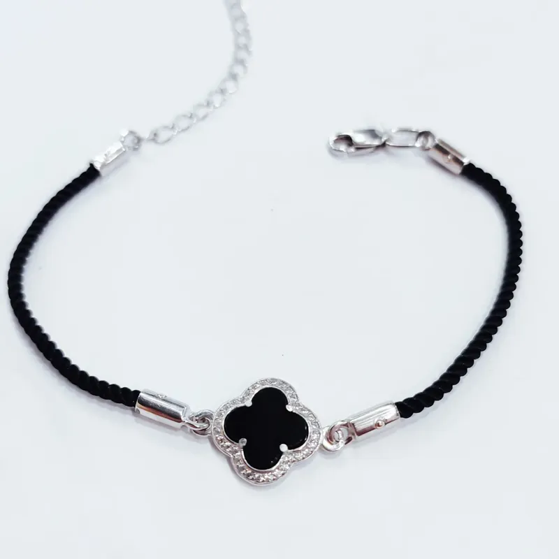 Нова модель, сучасного браслета з конюшиною. Підвіска на шнурочку. Зроблений із срібла 925 проби.