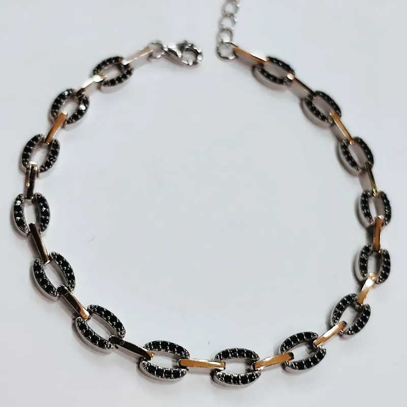 Браслет із срібла 925 проби з золотою пластиною. Родований. Вставка кубічний цірконій чорного кольору.