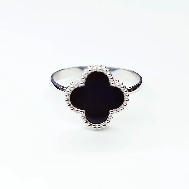Перстень, "Конюшина", зроблений із срібла 925 проби. Покриття родієм. Вставка онікс. Висота, ширина клевера 12мм.