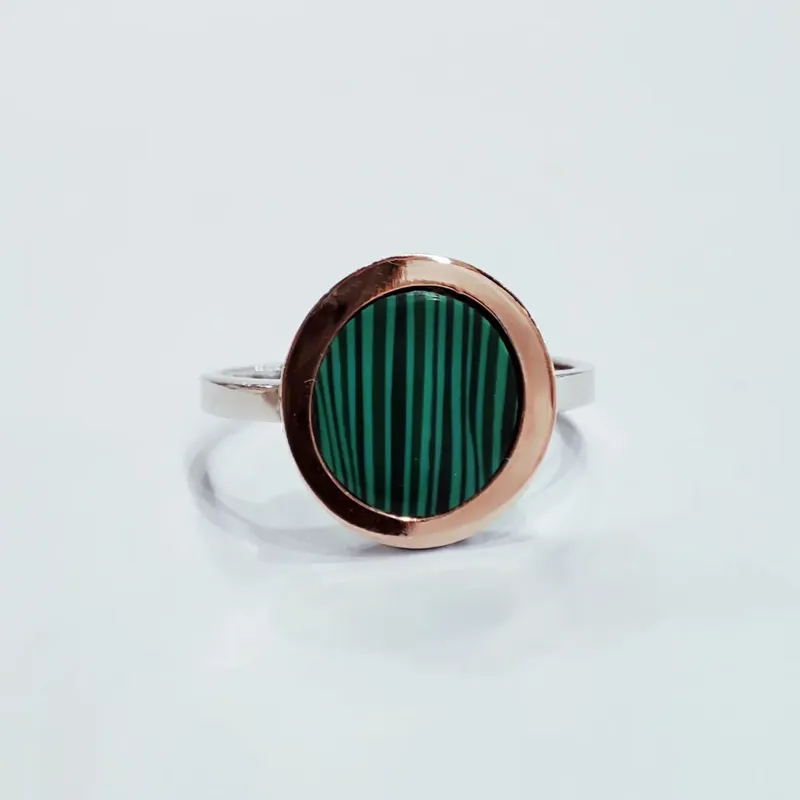 Срібло, золото і малахіт - класика, яка завжди в моді. Каблучка зроблена із срібла 925 проби, з золотою пластиною, родована, вставка малахіт. Це прикраса, яка підійде як до повсякденного образу, так і до вечірнього виходу.
