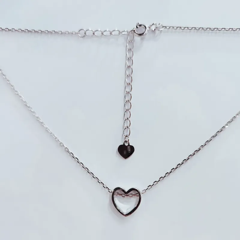 Кольє з сердечком- бігунком на якірному ланцюжку. Зроблене із срібла 925 проби. Родоване.