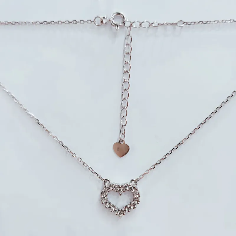 Сердечко на якірному ланцюжку. Кольє зроблено із срібла 925 проби. Родоване.