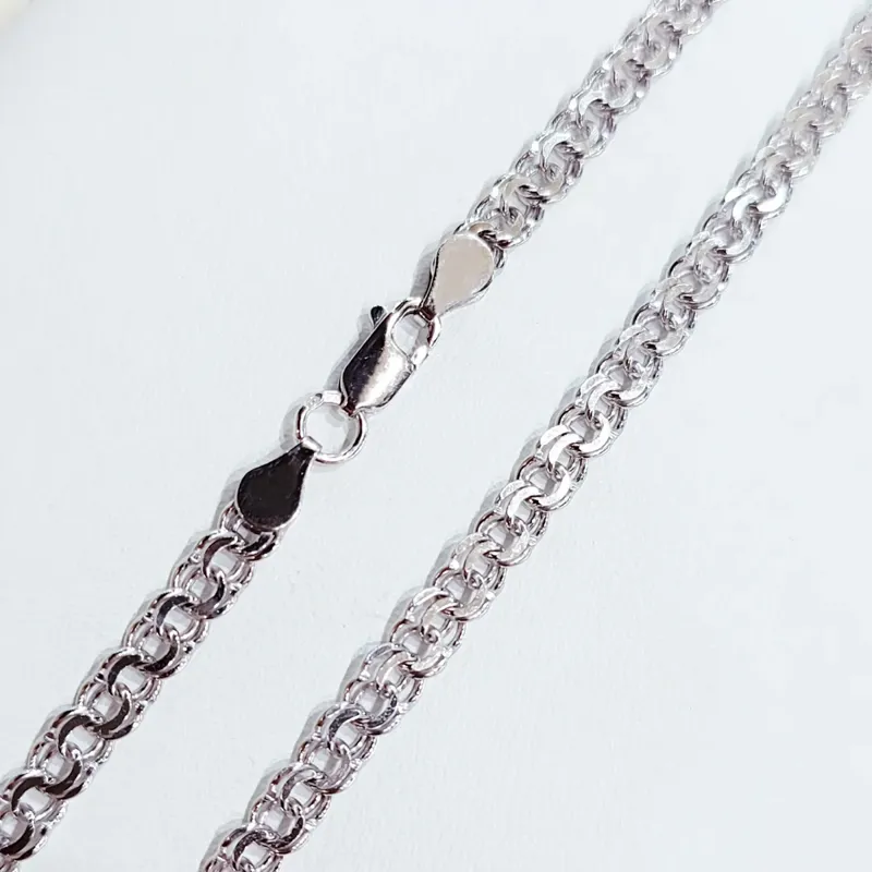 Ланцюг, бісмарк, із срібла 925 проби, родований, заводське виготовлення. Замок карабін. Міцна, практичне, не чорніє.