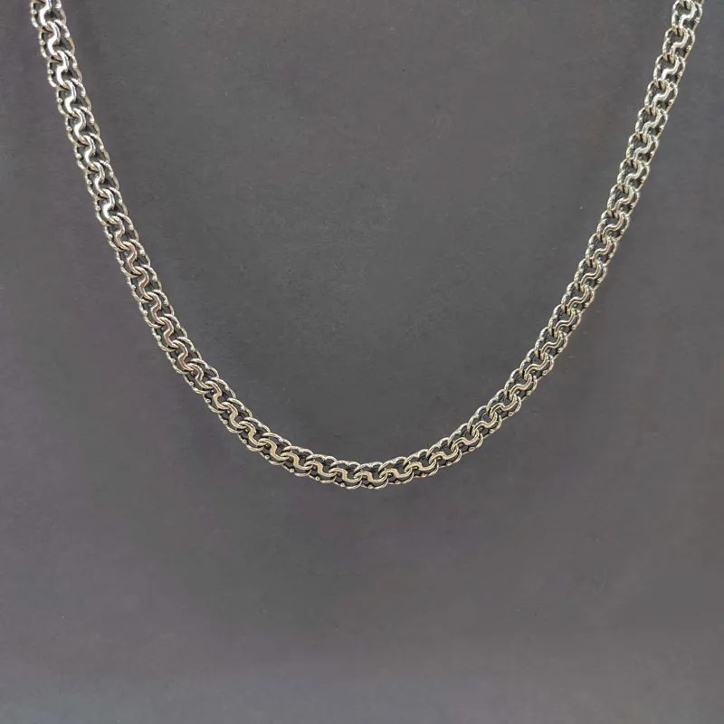 Срібний чоловічий ланцюг середньої ваги (~25 г) з чернінням. Модель відрізняється стриманішим і більш благородним характером у порівнянні з масивними ланцюгами — вона не масивна, але має виразну форму і чітку геометрію плетіння. Ланцюг підкреслює стиль власника, добре поєднується з урбаністичними та кежуал образами і підходить чоловікам, які цінують стильні, але не надто помітні аксесуари.