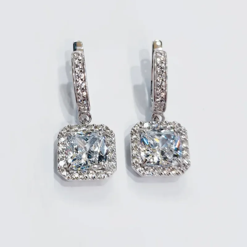 Сережки із срібла 925 проби. Покриття родієм. Вісюльки. Вставка- кубічний цірконій.