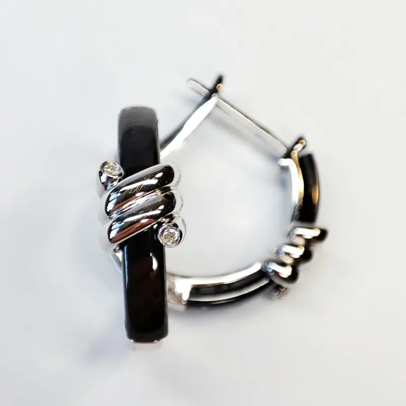 Сережки із срібла 925 проби, з керамікою та фіанітами. "Англійська" застібка.
