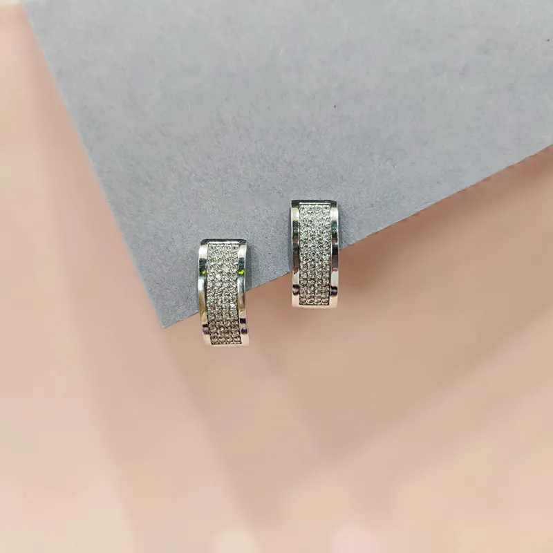 Срібні сережки прямокутної форми, повністю оздоблені фіанітами. Стильна прикраса з інтенсивним блиском камінців підкреслює акуратну геометрію виробу. Завдяки сучасному дизайну сережки легко поєднуються з будь-яким образом - від повсякденного до святкового. Чудовий вибір для тих, хто шукає срібні сережки з фіанітами, универсальний подарунок для жінки. Приблизний розмір: 0.8*1.9 см