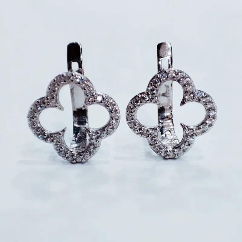 Сережки із срібла 925 проби. Родовані. Вставка -кубічний цирконій. Англійський замок.
