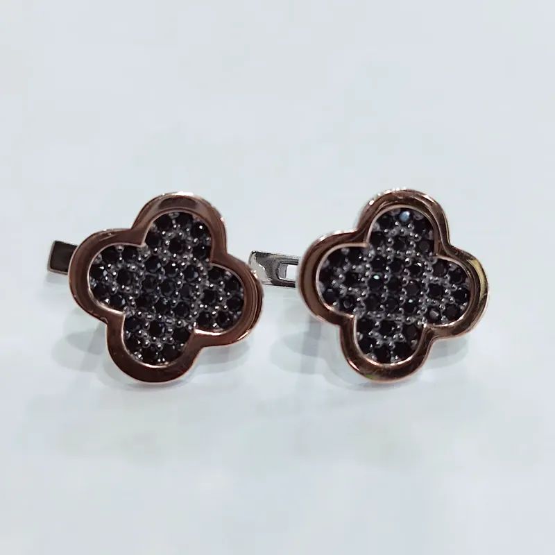 Сережки у вигляді клевера, зроблені із срібла 925 проби із золотими напайками. Покриття- родієм. Камні - кубічний цірконій, чорного кольору.