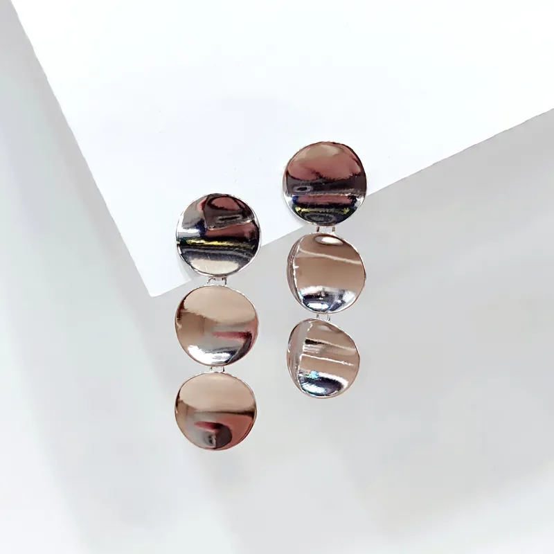 Срібні сережки-підвіски з геометричними елементами (родовані) Сучасні сережки з лаконічним дизайном у вигляді трьох округлих елементів — актуальний вибір для повсякденного стилю та міських образів. Гладка дзеркальна поверхня створює ефект легкого блиску та підкреслює геометрію виробу. Характеристики: Матеріал: срібло 925 проби Покриття: родій Тип застібки: англійська Дизайн: підвіски з круглими елементами Поверхня: полірована, дзеркальна Переваги: Актуальний мінімалістичний стиль Візуально витягують силует обличчя Легкі та комфортні у носінні Підходять як для щоденного використання, так і для вечірніх образів Сережки гармонійно поєднуються з базовим гардеробом та сучасними трендами. Ідеальний варіант для тих, хто цінує простоту форм і виразний металевий акцент.