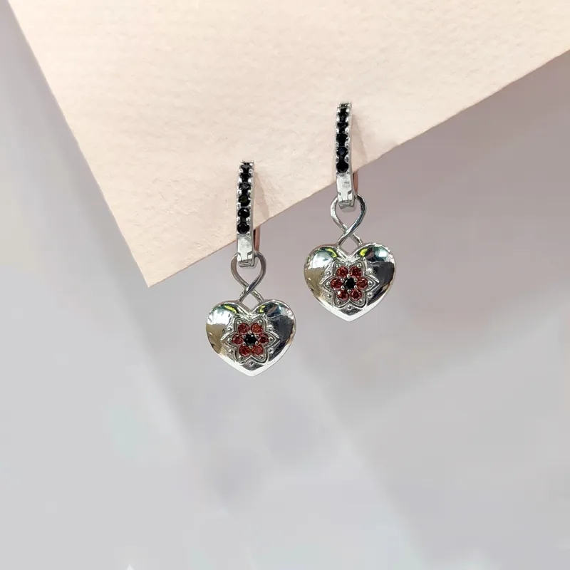 Срібні сережки-вісюльки трансформери у вигляді сердечка з виразними етнічними мотивами. Легкі та рухливі. Контрастний малюнок у червоно-чорній гамі створює стильний акцент і підкреслює індивідуальність. Завдяки зручній посадці ці сережки підходять як для щоденного носіння, так і для особливих образів. Ідеальний вибір для тих, хто шукає етнічні срібні сережки, стильні вісюльки, оригінальну прикрасу з характером або подарунок із виразною символікою.