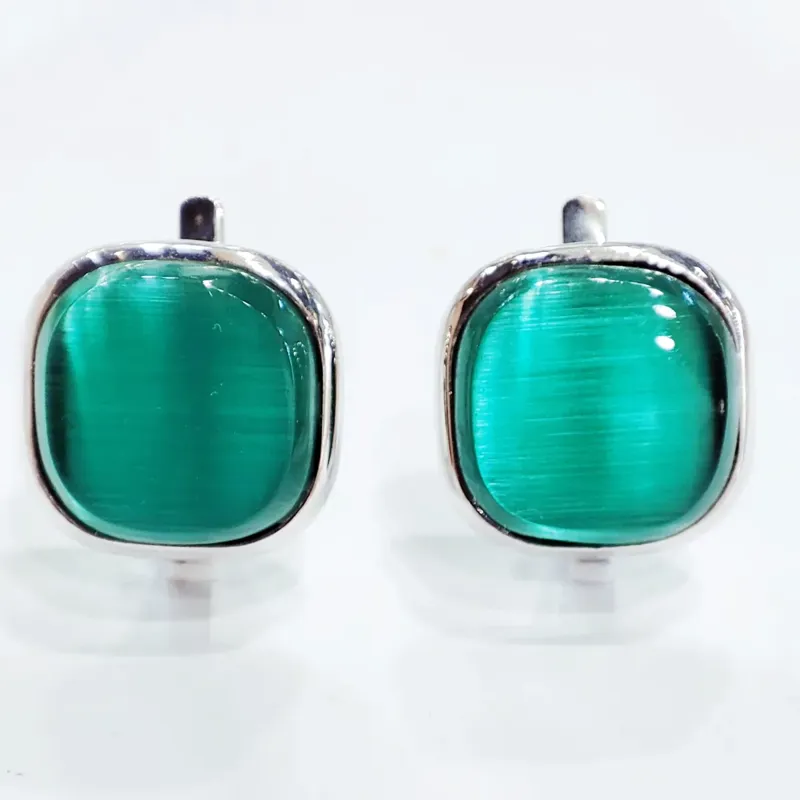Срібні сережки в мінімалістичному стилі, з натуральним каменем - улексит, в зеленому кольорі.