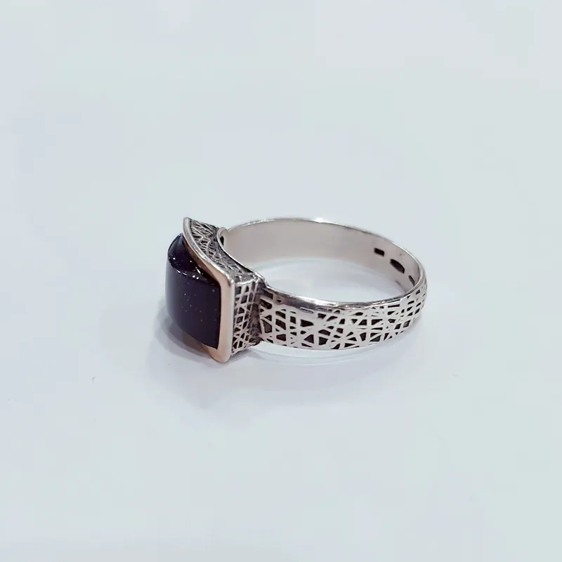 Срібна каблучка з Авантюрином (Ніч каіра) та золотою пластиною