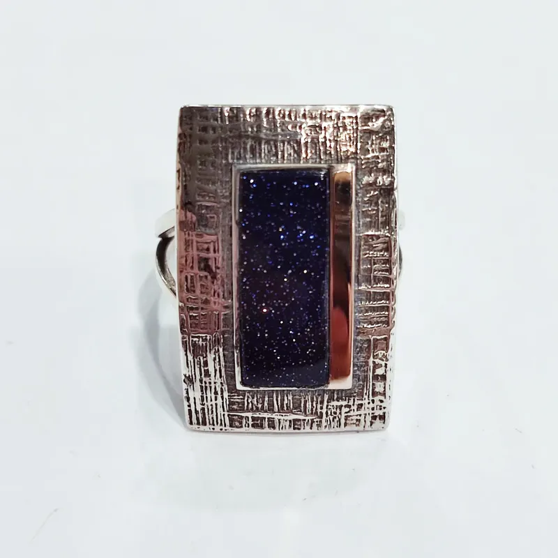 Елегантне срібне кільце з золотою пластиною та вставкою онікса. Верхня частина 25*16 мм