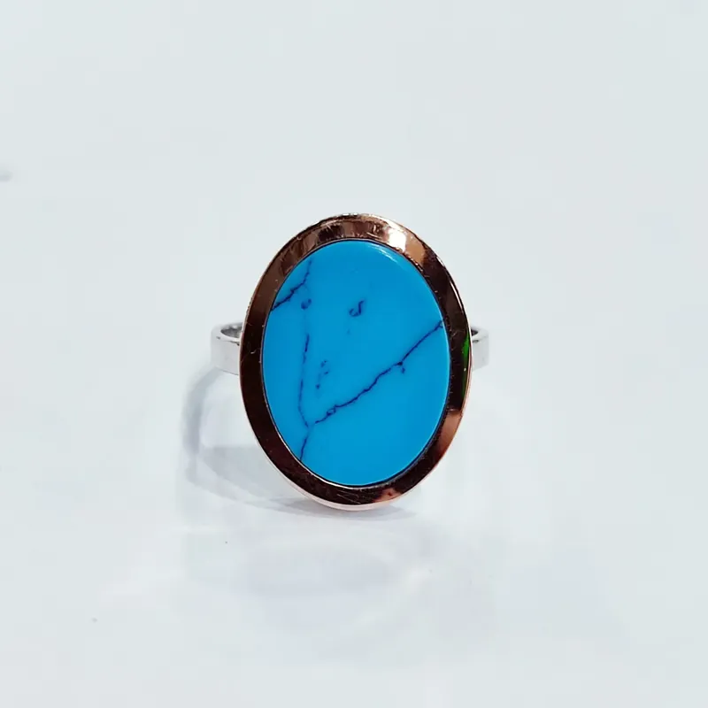 Елегантна каблучка зі срібла з золотою пластиною та натуральною бірюзою у центрі. Насичений голубий відтінок бірюзи виглядає розкішно й підкреслює індивідуальність. Особливості виробу: матеріал: срібло 925 проби; вставка: натуральна бірюза; форма вставки: овальна, 17 на 14 мм. Каблучка з бірюзою стане стильним акцентом у вашій колекції прикрас. Вона ідеально поєднується як з повсякденними образами, так і з вечірнім вбранням, додаючи нотку елегантності та гармонії.