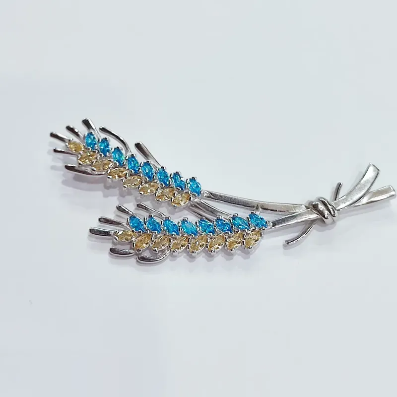 Брошка у вигляді колосків з жовто блакитними фіанітами. Завдовжки -7 см.