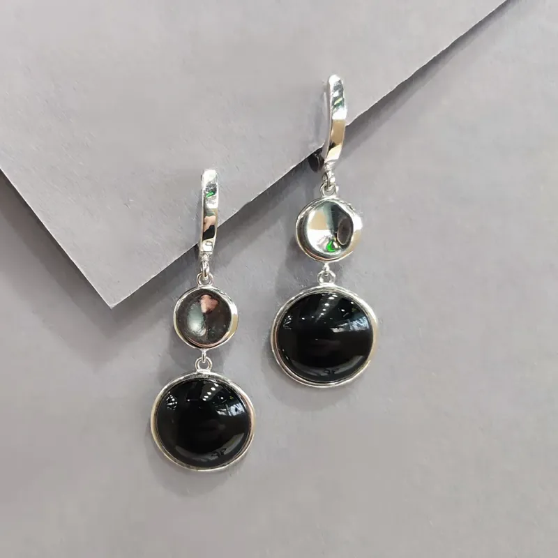 Вишукані сережки. Подовжені вісюльки. Виготовлені зі срібла 925 проби. Родовані. Довжина - 5 см