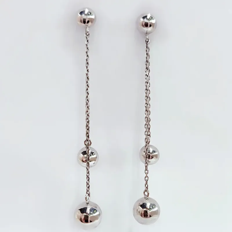 Сережки із срібла 925 проби. Родовані. Два щарік розміром 6 і 8 мм, на ланцюжках. Довжина 6 см. Застібка- евро гвоздіки.