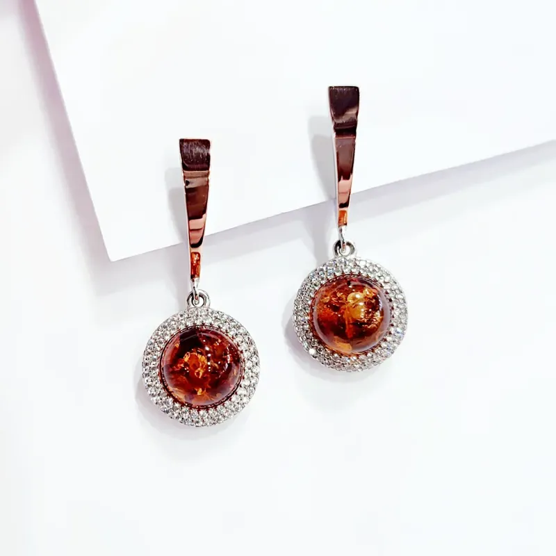Вишукані сережки-вісюльки, створені для тих, хто цінує гармонію природної краси та сучасного дизайну. Основа виконана зі срібла 925 проби, з золотою пластиною, що додає теплого сяйва прикрасі. У центрі композиції — натуральний бурштин, оточений фіанітами, які підкреслюють глибину кольору каменю. Вісюлька у формі кола м’яко рухається при кожному русі, створюючи легкий акцент у вашому образі. Ці сережки стануть ідеальним доповненням як до повсякденного, так і до святкового вбрання. Приблизна довжина - 3.8 см