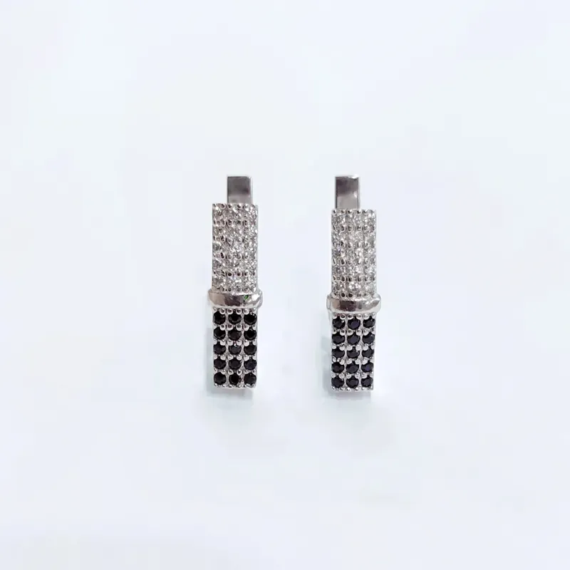 Елегантні срібні сережки, виконані у сучасному геометричному стилі. Верхня частина інкрустована прозорими фіанітами, а нижня прикрашена глибокими чорними каменями, створюючи контраст, який завжди виглядає вишукано. Матеріал: срібло 925 проби Покриття: родій (для блиску та захисту від потемніння) Вставки: фіаніти білого та чорного кольору Застібка: англійський замок Стиль: класика з сучасним акцентом Приблизний розмір: 1.9*0.55 см Ідеальний вибір для жінок, які цінують витонченість і контраст. Ці сережки стануть універсальним доповненням як до ділового образу, так і до вечірнього вбрання.