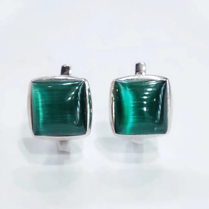 Стильні срібні сережки з натуральним каменем - улекситом. Висота та ширина передній частини 10 мм.