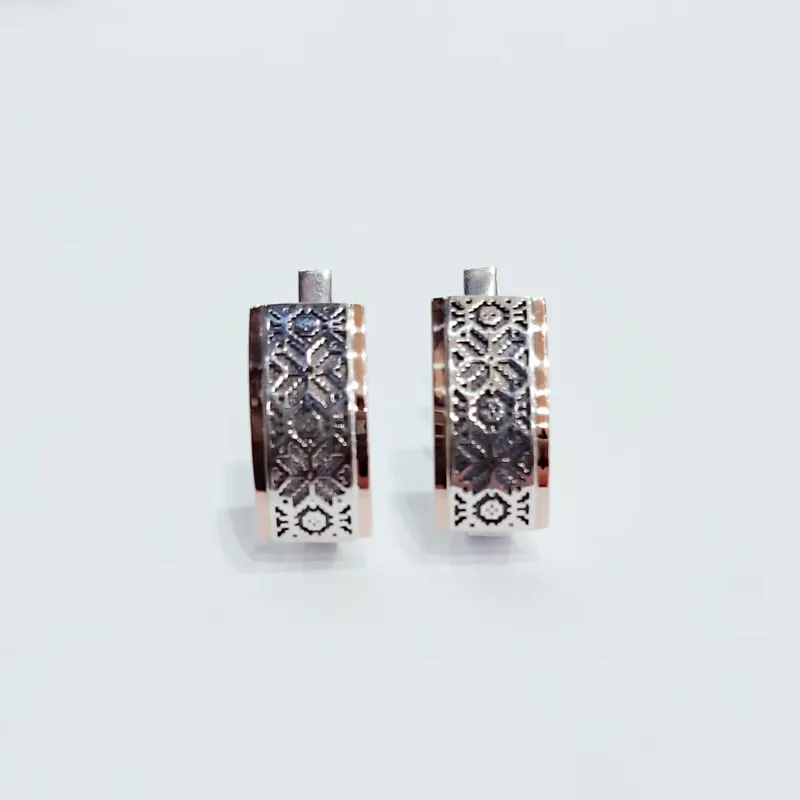 Стильні сережки зі срібла 925 проби з золотими напайками та чорним візерунком у вигляді традиційної української “Вишиванки, зорі-сніжинки”. Такий символ здавна вважався оберегом, що приносить гармонію, внутрішню силу та захист. Поєднання срібла, золота й етнічного візерунка. Ідеальний вибір для тих, хто цінує етнічні мотиви в поєднанні з сучасним дизайном. Довжина-12 мм, ширина-9мм