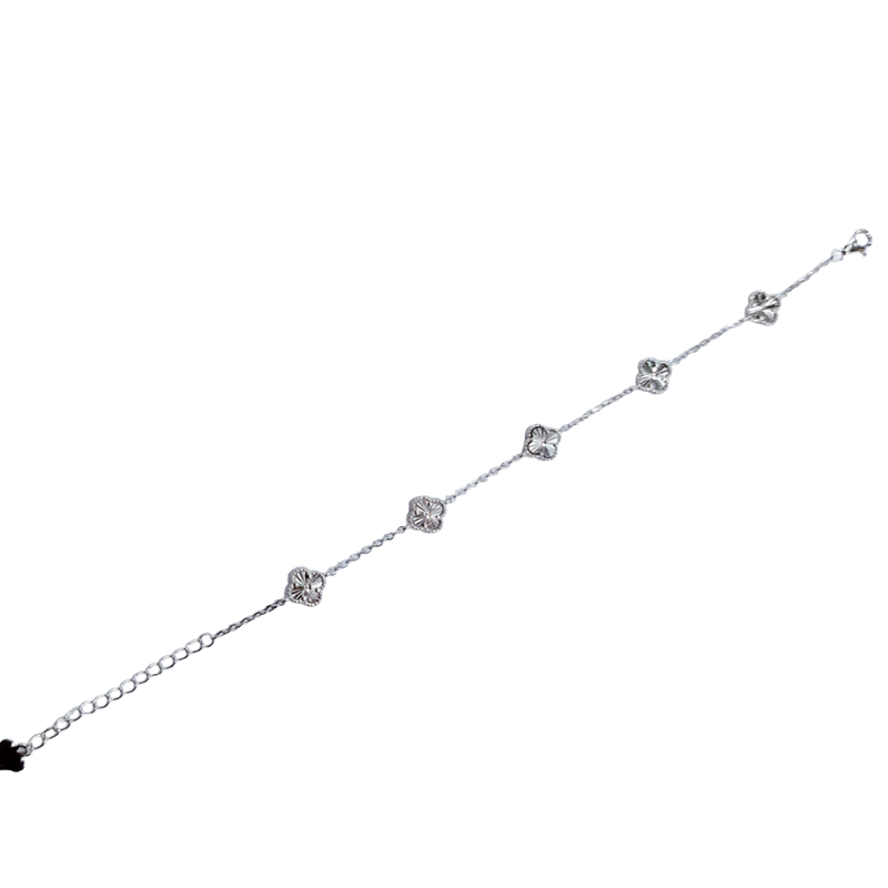 Трендова модель. Браслет виконаний зі срібла 925 проби. Родований. Має подовжувач довжини. Конюшини двосторонні. Приблизний розмір квіточки - 0.8-0.9 см