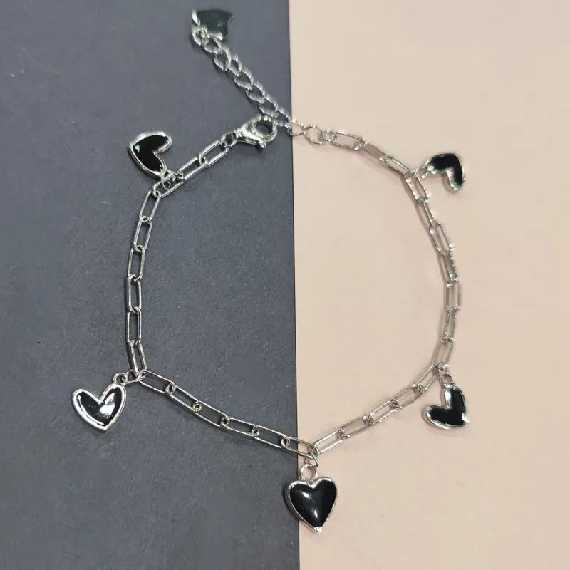 Браслет на подарунок для коханій. Якірне плетіння з довгими ланками та п'ять підвісок у вигляді сердечка. Регульована довжина.