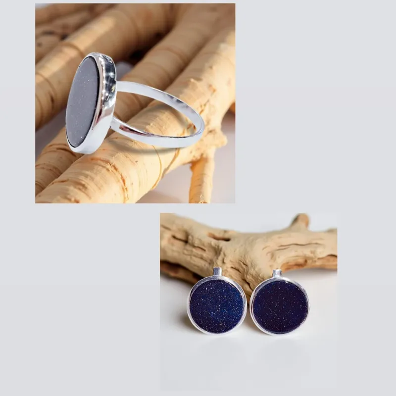 Срібний набір із сережок та каблучки з авантюрином у круглій формі. Має більш масивний, виразний дизайн. Камінь обрамлений товстими, щільними боками, завдяки чому прикраси виглядають солідно та впевнено. Авантюрин красиво грає при освітленні, підкреслюючи свій насичений природний відтінок. Сережки мають акуратну, але відчутну форму, яка добре виділяється, а каблучка доповнює комплект і створює цілісний, помітний образ. Набір підійде тим, хто любить прикраси з характером — об’ємні, стильні й з натуральним каменем. Приблизний розмір в діаметрі: 1.75 см ✅ Сережки вага 7.21г -ціна 2580 грн ✅ Каблучка: вага 3.51 г- ціна 1400 грн