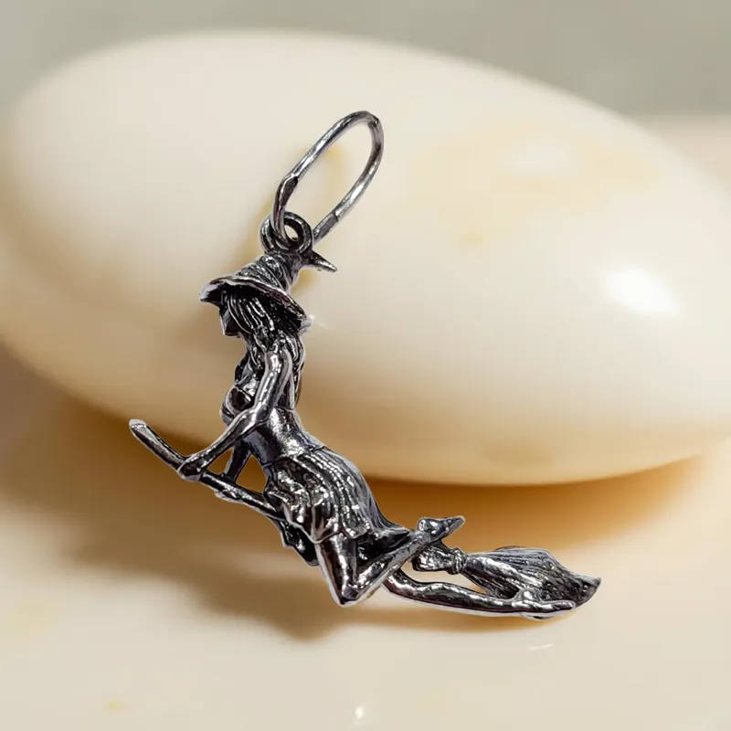 Оригінальна підвіска зі срібла 925 проби у вигляді відьми на мітлі — стильний аксесуар для тих, хто цінує незвичайні деталі. Символ магії, загадковості та внутрішньої сили. Така підвіска стане не лише прикрасою, а й особистим талісманом. Оберіг від зла, заздрості, негативної енергії; символ жіночої мудрості, незалежності й сили; талісман удачі для жінок, які працюють із енергіями, творчістю, інтуїцією. Чудовий подарунок для поціновувачів оригінальних аксесуарів