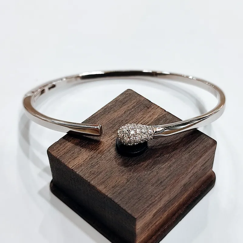 Сучасний браслет у стилі Cartier, натхненний культовими моделями, що вважаються іконою мінімалізму та люксу. Дизайн у напрямку industrial / hardware jewelry - прикраси, що переосмислюють форму металевих елементів і переносять їх у ювелірний стиль. Лаконічна жорстка форма з акцентним елементом і блиском каміння створює впізнаваний образ, який асоціюється зі свободою, характером і бунтарським стилем. Це прикраса для тих, хто обирає тренд, а не класику - виглядає дорого, сучасно і впевнено.